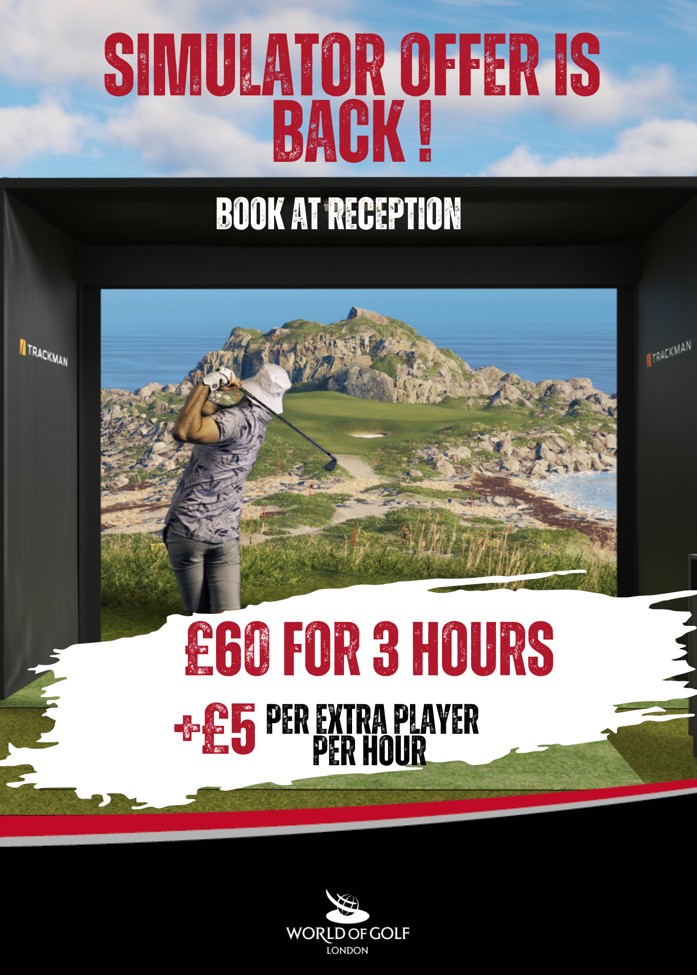 As the new season dawns we have a great offer on our indoor simulators: 3 hours of fabulous fun for just £60, shared by up to 3 people. If a fourth player wants to join, they can do so for just £5 per hour. The offer can only be booked at reception and runs throughout April, subject to availability.